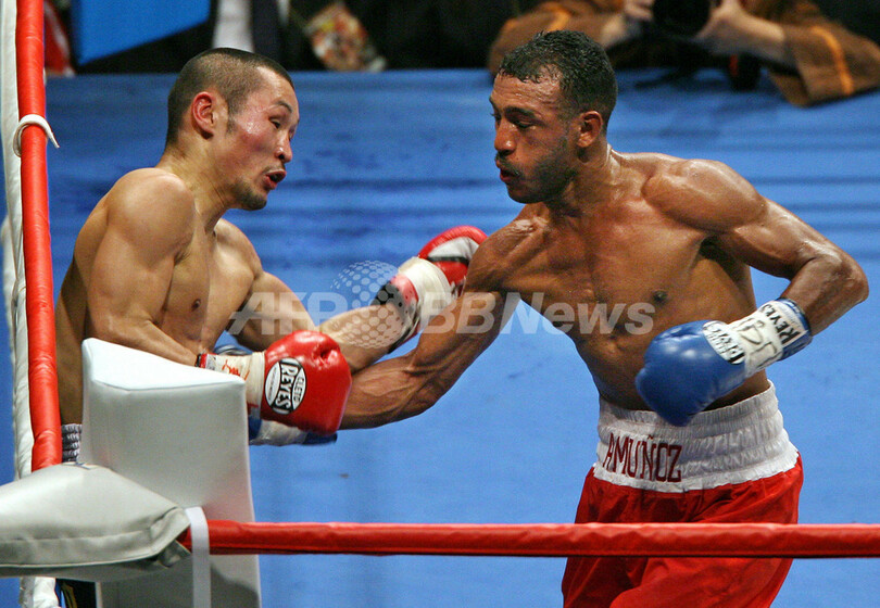 【東京 3日 AFP】ボクシング、WBA世界スーパーフライ級タイトルマッチ、王者・名城信男(Nobuo Nashiro、日本、左)は、挑戦者のアレクサンデル・ムニョス(Alexander Munoz、ベネズエラ)と対戦。試合は12ラウンドの末、名城が0-3(112-117、111-117、109-118)の判定で敗れ、2度目の防衛は成らず、王座を奪われてしまった。(c)AFP/TOSHIFUMI KITAMURA
