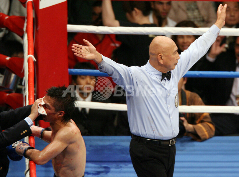 スポーツ スポーツ その他 <ボクシング>本望 8ラウンドTKOで王座奪取ならず - 東京 2007年5月3日 21:11 発信地:東京 [ アジア・オセアニア 東京 ] このニュースをシェア ‹ › ❮ 3/4 ❯ 写真は、右目を負傷しレフリーにTKOを宣言される本望(左)。(c)AFP/TOSHIFUMI KITAMURA 画像作成中 ! 【東京 3日 AFP】ボクシング、WBA世界スーパーフェザー級タイトルマッチ、エドウィン・バレロ(Edwin Valero、ベネズエラ)vs本望信人(Nobuhito Honmo、日本、右)。試合は挑戦者の本望が8ラウンド1分54秒にTKOで王者のエドウィン・バレロに敗れた。(c)AFP/TOSHIFUMI KITAMURA スポーツ その他 一覧へ> メディア・報道関係・法人の方向け 写真・動画 購入のお問合せ>