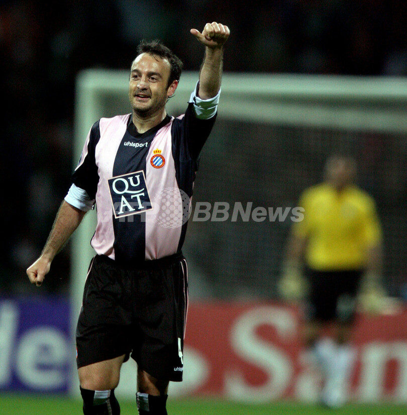 【ブレーメン/ドイツ 3日 AFP】サッカー、UEFA杯(UEFA Cup)・準決勝、ヴェルダー・ブレーメン(Werder Bremen)vsエスパニョール(Espanyol)、第2戦。試合はエスパニョールが2-1でブレーメンを降し、2戦合計スコアを5-1として決勝進出を決めた。エスパニョールは16日に行われる決勝で同じスペインのセビージャ(Sevilla)と対戦する。写真は、チームの勝利に歓喜するエスパニョールのフランシスコ・ルフェテ(Francisco Rufete)。(c)AFP/DDP/DAVID HECKER