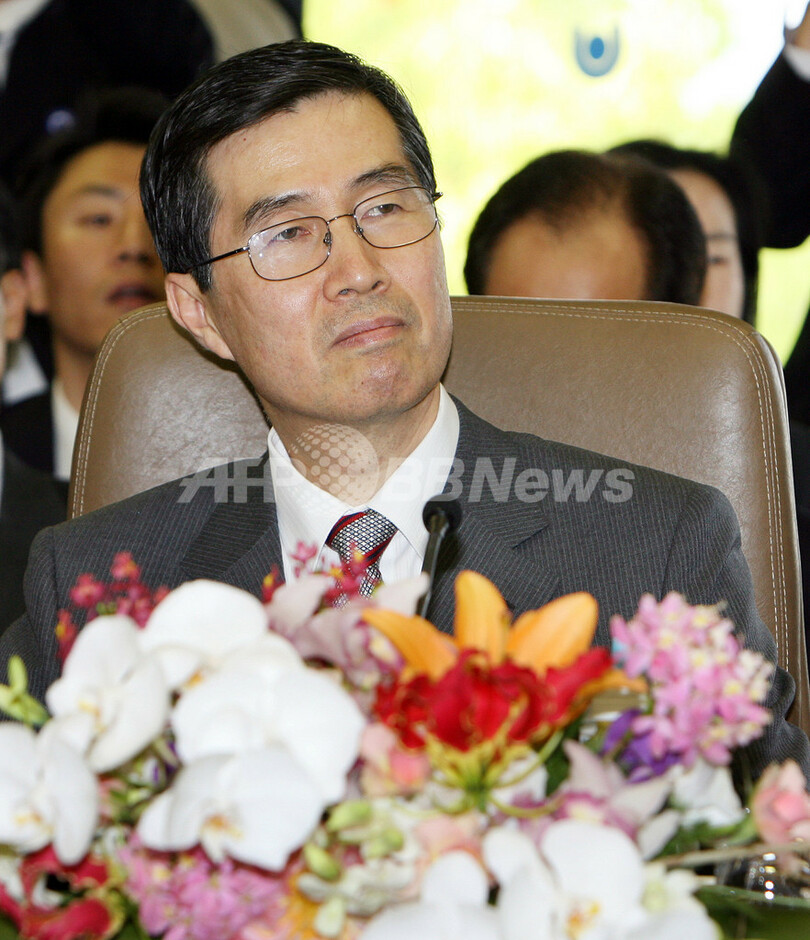 写真は京都で4日、ADB総会に出席する尾身幸次財相(左)と韓国の権五奎(クォン・オギュ、Kwon O-Kyu)財政経済相。(c)AFP/TOSHIFUMI KITAMURA