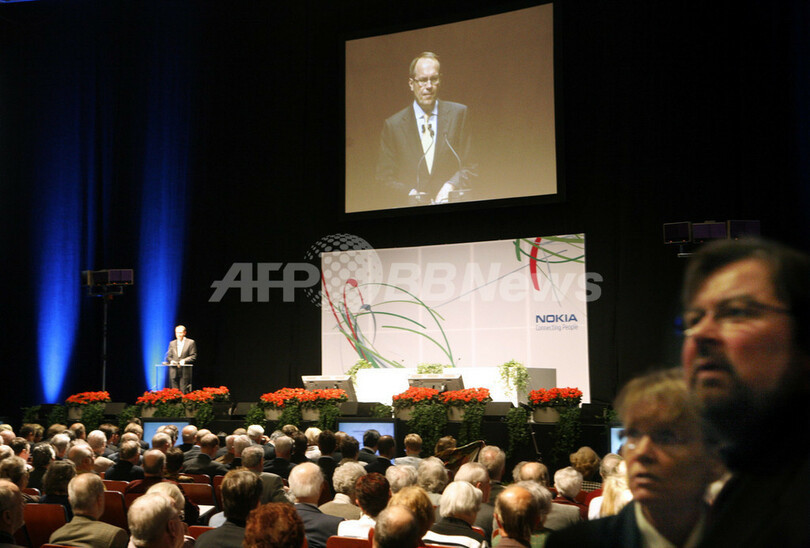 写真は3日、ヘルシンキで行われた同社の年次総会。(c)AFP/LEHTIKUVA/Markku Ulander