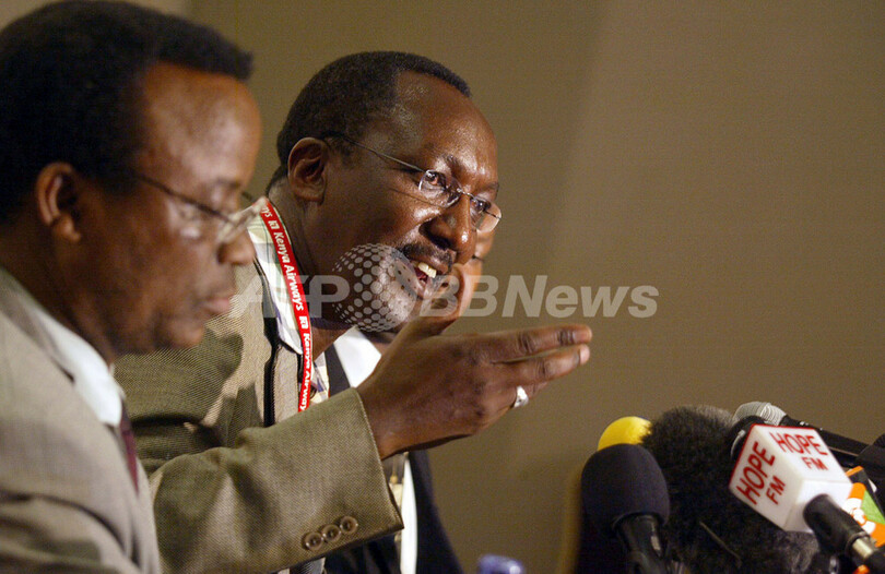 写真は同日、ナイロビで記者会見に臨むケニア航空CEOのTitus Naikuni氏。(c)AFP/TONYKARUMBA