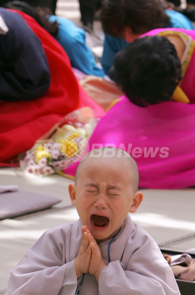 ニュース ライフ 子供たちが寺の修行僧体験 - 韓国 2007年5月5日 18:29 発信地:韓国 [ 韓国・北朝鮮 韓国 ] このニュースをシェア ‹ › ❮ 3/5 ❯ 写真は5日、泣く少年の「僧」。(c)AFP/CHOI WON-SUK 画像作成中 ! 【ソウル 6日 AFP】24日のブッダの生誕記念日を控え、9人の子供たちが22日間にわたる寺院での僧の生活を経験する。写真は5日、剃髪を体験する少年「僧」。(c)AFP/CHOI WON-SUK ライフ 一覧へ> メディア・報道関係・法人の方向け 写真・動画 購入のお問合せ>
