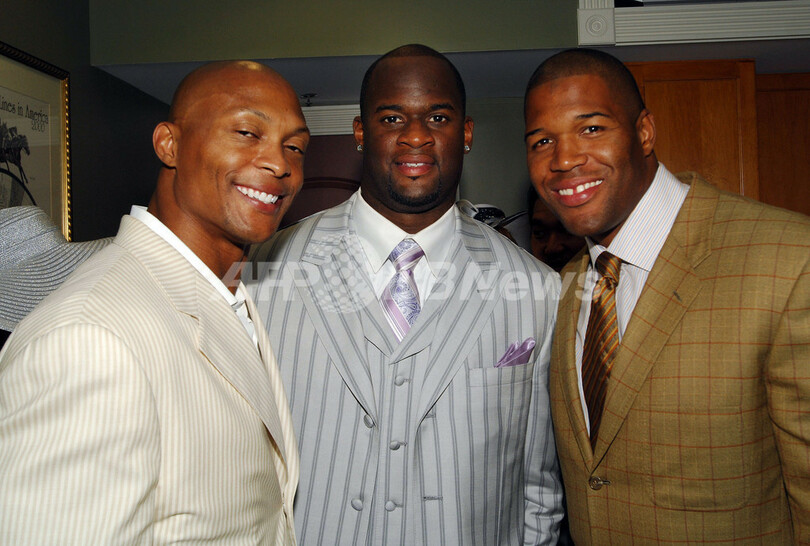 スポーツ スポーツ その他 <競馬 第133回ケンタッキーダービー>ラリー・バークヘッドが観戦 - 米国 2007年5月6日 3:37 発信地:米国 [ 北米 米国 ] このニュースをシェア ‹ › ❮ 3/23 ❯ 写真は会場でポーズをとる(左から)元NFL選手でTV司会者のエディー・ジョージ(%%Eddie George%%)、NFL・テネシー・タイタンズ(%%Tennessee Titans%%)のQBヴィンス・ヤング(%%Vince Young%%)、NFL・ニューヨーク・ジャイアンツ(%%New York Giants%%)のマイケル・ストレイハン(%%Michael Strahan%%)。(c)AFP/Getty Images Jeff Gentner 画像作成中 ! 【ルイビル/米国 6日 AFP】競馬、第133回ケンタッキーダービー(133rd Kentucky Derby)が5日、チャーチルダウンズ競馬場(Churchill Downs)で開催され、各界著名人が観戦に訪れた。写真は会場に到着した写真家のラリー・バークヘッド(Larry Birkhead、中)。(c)AFP/Getty Images Jeff Gentner スポーツ その他 一覧へ> メディア・報道関係・法人の方向け 写真・動画 購入のお問合せ>