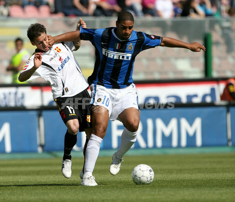 スポーツ サッカー <サッカー セリエA>インテル メッシーナを降し勝ち点を90に伸ばす - イタリア 2007年5月6日 23:56 発信地:イタリア [ ヨーロッパ イタリア ] このニュースをシェア ‹ › ❮ 6/12 ❯ 写真は、メッシーナのサルヴァトーレ・マジエッロ(%%Salvatore Masiello%%、左)を背にボールを受けるインテルのアドリアーノ(%%Adriano%%)。(c)AFP/Marcello PATERNOSTRO 画像作成中 ! 【メッシーナ/イタリア 6日 AFP】サッカー、イタリア・セリエA・第35節、メッシーナ(Messina)vsインテル(Inter Milan)。試合は後半27分にエルナン・クレスポ(Hernan Crespo)が決勝点を挙げたインテルが1-0で勝利し、シーズン28勝目を挙げて勝ち点を90に伸ばした。写真は、ゴールに歓喜するクレスポ。(c)AFP/Marcello PATERNOSTRO サッカー 一覧へ> メディア・報道関係・法人の方向け 写真・動画 購入のお問合せ>
