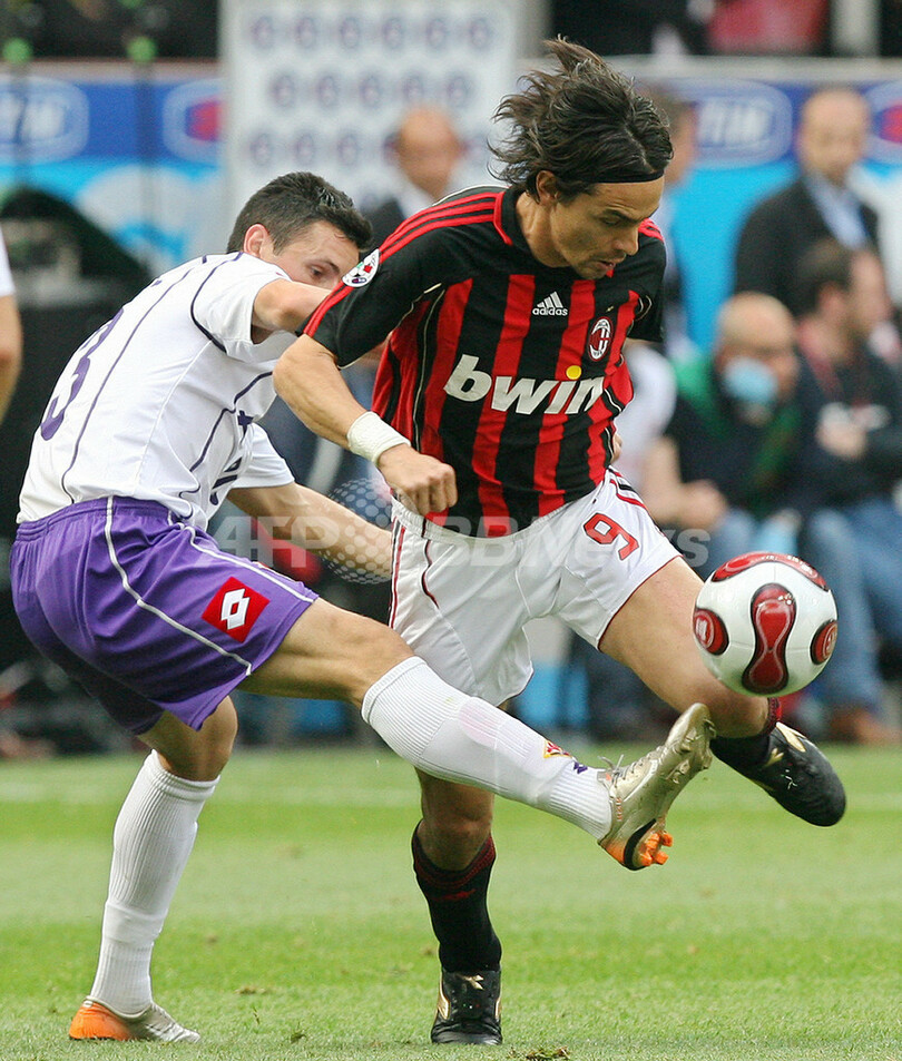 【ミラノ/イタリア 6日 AFP】サッカー、イタリア・セリエA・第35節、ACミラン(AC Milan)vsフィオレンティーナ(Fiorentina)。試合はスコアレスドローに終わり、ホームで勝ち点1の獲得に終わったミランは4位に順位を下げた。写真は、得点を奪えず落胆するミランのリカルド・オリベイラ(Ricardo Oliveira、左)とカカ(Kaka)。(c)AFP/Paco SERINELLI