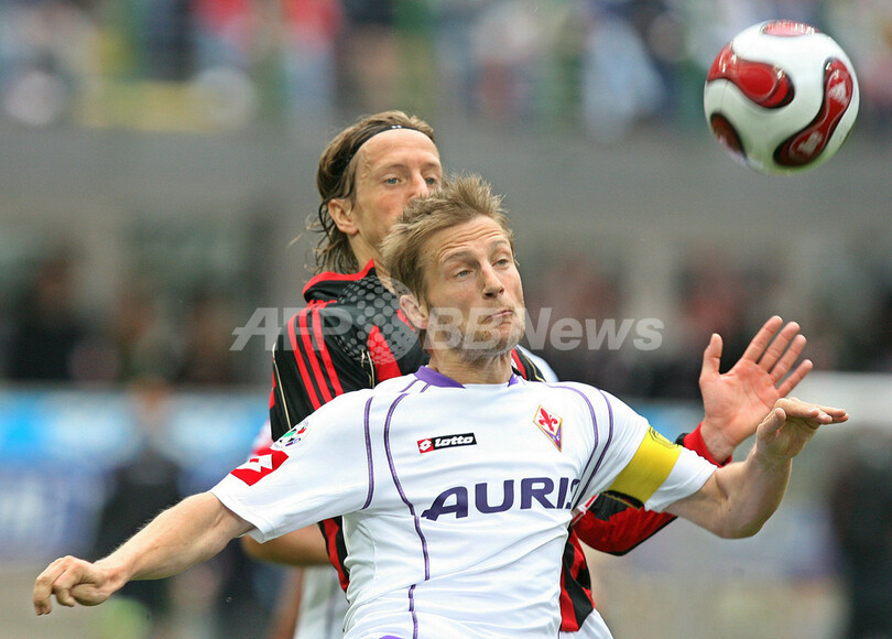 【ミラノ/イタリア 6日 AFP】サッカー、イタリア・セリエA・第35節、ACミラン(AC Milan)vsフィオレンティーナ(Fiorentina)。試合はスコアレスドローに終わり、ホームで勝ち点1の獲得に終わったミランは4位に順位を下げた。写真は、得点を奪えず落胆するミランのリカルド・オリベイラ(Ricardo Oliveira、左)とカカ(Kaka)。(c)AFP/Paco SERINELLI