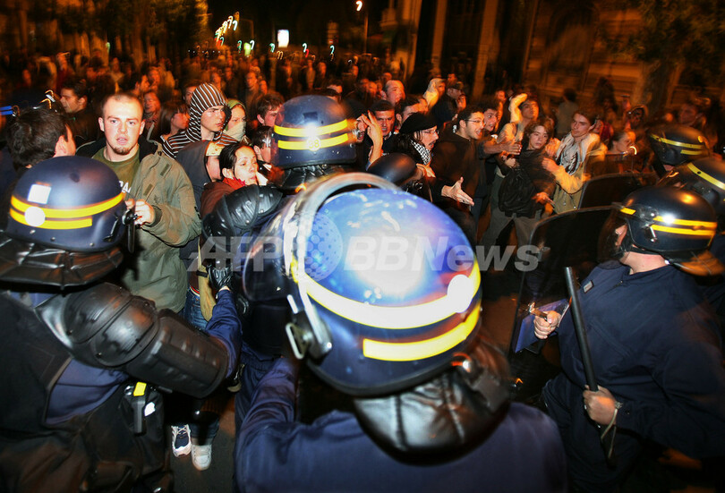 【パリ 7日 AFP】パリ中心部で6日、大統領選挙の決選投票で右派・国民運動連合(Union pour un Mouvement Populaire、UMP)のニコラ・サルコジ(Nicolas Sarkozy)候補が、左派社会党(PS)のセゴレーヌ・ロワイヤル(Segolene Royal)氏を破って当選したことに不満を持つ反サルコジ派の人々が抗議デモを行い、警備にあたっていた機動隊と衝突した。