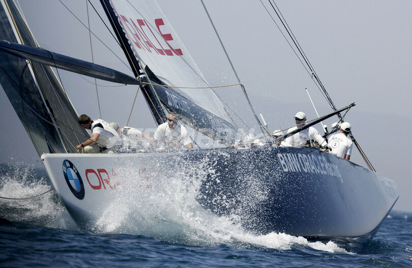 写真は、レースに臨むBMWオラクル・レーシング。(c)AFP/JOSE JORDAN