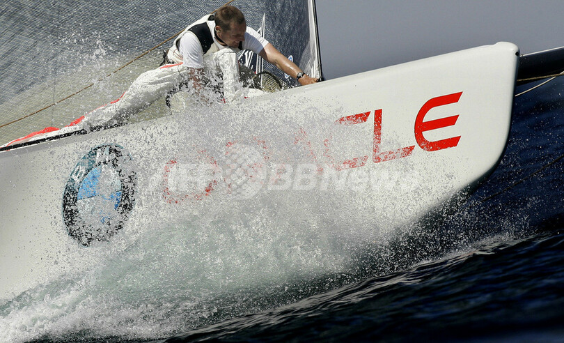 写真は、レースに臨むBMWオラクル・レーシング。(c)AFP/JOSE JORDAN