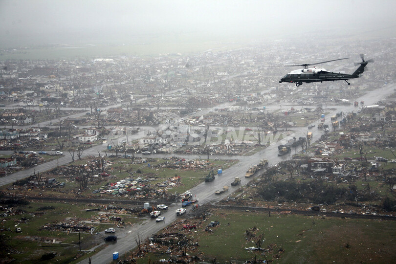 人口1600人のグリーンズバーグは4日、竜巻により壊滅的被害を受け市街地で8人、郊外で少なくとも2人の死者を出した。ヘリコプターで現地入りした大統領は、被害を受けた一帯の住民と会い、「街の再建に意欲的な人々の精神力の強さに感銘を受けた」と語った。
