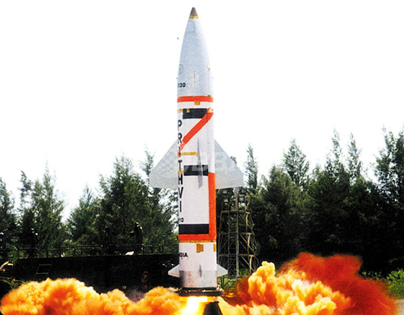 写真は、インド国防省提供による「プリトビ1」発射実験の様子。(c)AFP/MINISTRY OF DEFENCE