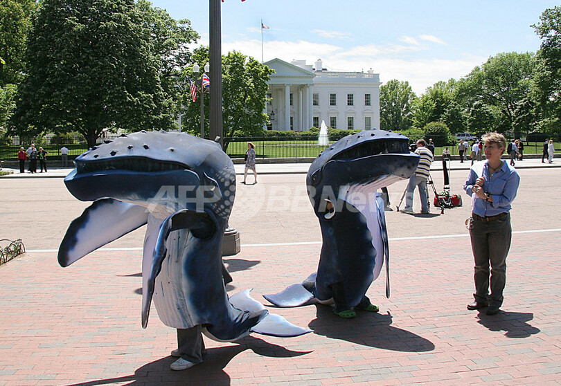 ニュース 環境・科学 グリーンピース、今度はクジラになって商業捕鯨に抗議 - 米国 2007年5月9日 3:43 発信地:米国 [ 北米 米国 ] このニュースをシェア ‹ › ❮ 2/2 ❯ 写真は同日、「クジラの着ぐるみ」をかぶって商業捕鯨禁止を訴えるグリーンピースのメンバー。(c)AFP/Karen BLEIER 画像作成中 ! 【ワシントンD.C./米国 11日 AFP】環境保護団体グリーンピース(Greenpeace)は8日、ホワイトハウス(White House)前で、商業捕鯨に反対する抗議活動を行った。写真は同日、「クジラの着ぐるみ」をかぶって商業捕鯨禁止を訴えるグリーンピースのメンバー。(c)AFP/Karen BLEIER 環境・科学 一覧へ> メディア・報道関係・法人の方向け 写真・動画 購入のお問合せ>