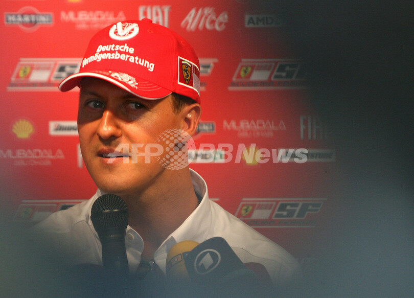 写真は、会見に臨むシューマッハ。(c)AFP/LLUIS GENE