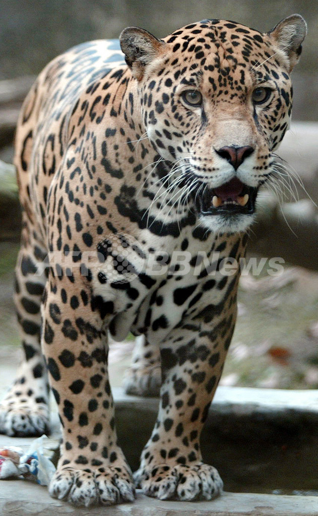 写真は11日、ホンジュラスの首都テグシガルパ(Tegucigalpa)の北にあるエル・ピカチョ(El Picacho)市立動物園であくびをするジャガーの「モンチョ」。(2007年5月11日撮影)(c)AFP/Elmer MARTINEZ