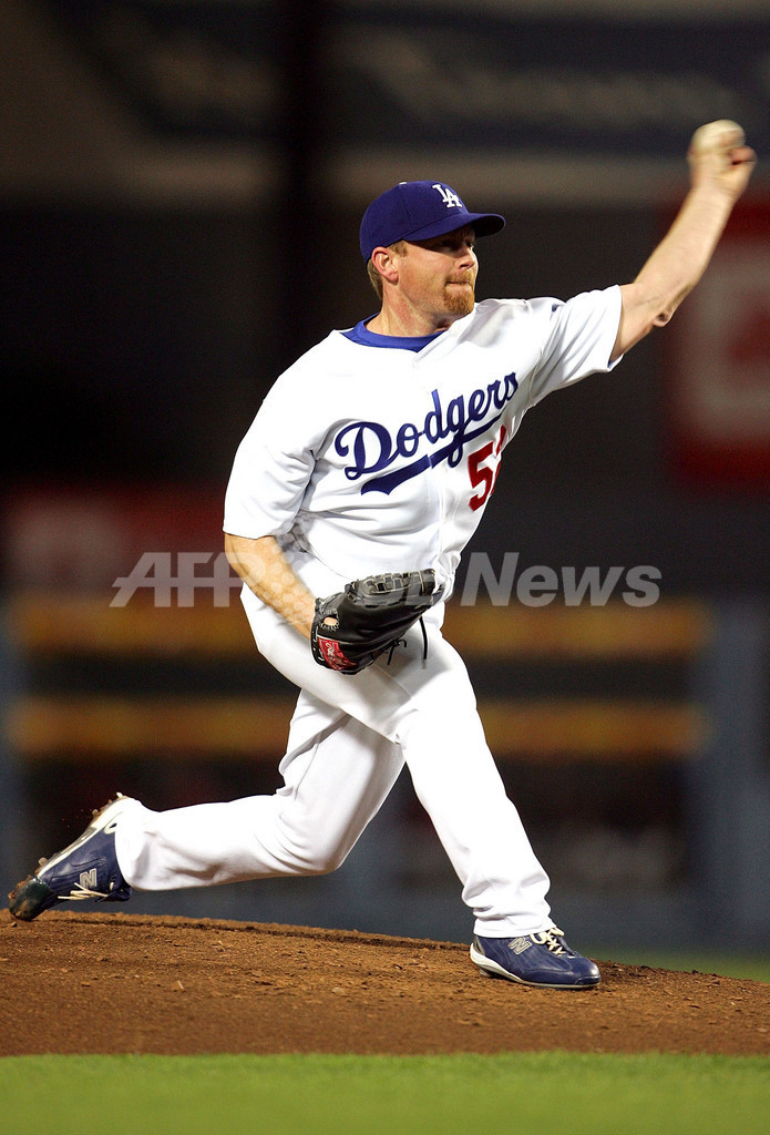 【ロサンゼルス/米国 11日 AFP】07MLB、ロサンゼルス・ドジャース(Los Angeles Dodgers)vsシンシナティ・レッズ(Cincinnati Reds)。ドジャースの先発ランディ・ウルフ(Randy Wolf)は、7回を投げて4安打無失点11奪三振に抑える好投でレッズ打線を沈黙させ、今季4勝目を挙げた。試合はドジャースが2-0で勝利を収め、ナ・リーグ西地区首位をキープした。(c)AFP/Getty Images Jeff Gross