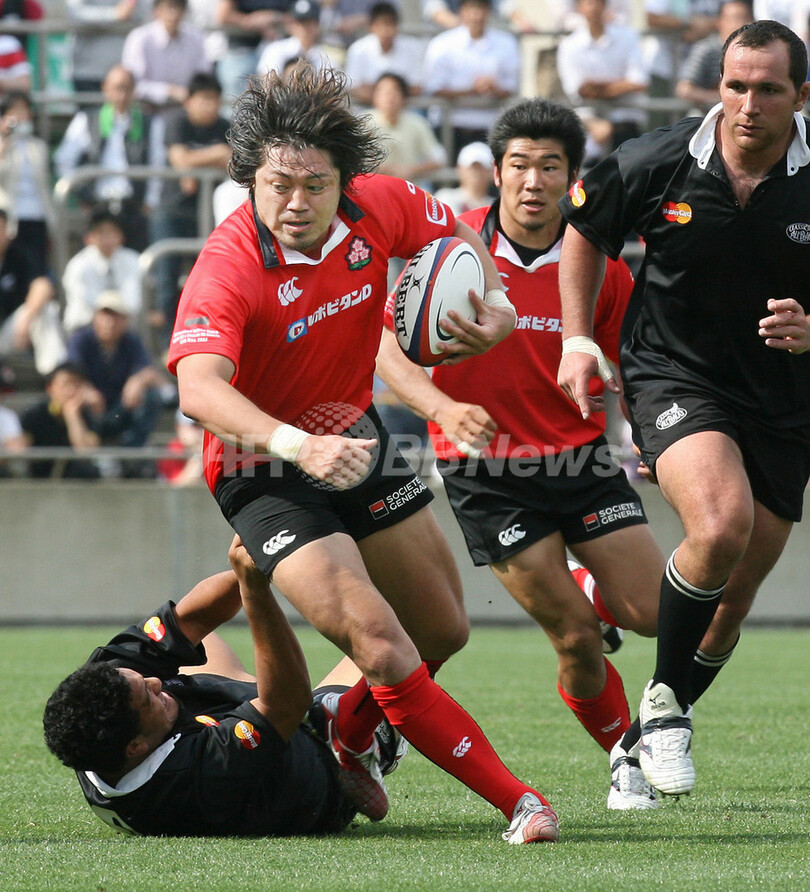 スポーツ ラグビー <ラグビー 親善試合>クラシック・オールブラックス ジャパンXVに快勝 - 東京 2007年5月12日 19:08 発信地:東京 [ アジア・オセアニア 東京 ] このニュースをシェア ‹ › ❮ 8/12 ❯ 写真は、ボールをキープする日本代表の箕内拓郎(%%TAKURO MIUCHI%%)。(c)AFP/KAZUHIRO NOGI 画像作成中 ! 【東京 12日 AFP】ラグビー・親善試合、ジャパンXV(Japan XV)vsクラシック・オールブラックス(Classic All Blacks、ニュージーランド)。試合はオールブラックスが36-6で勝利を収めた。写真は、ボールをキープしながら駆け上がるクラシック・オールブラックスのジョナー・ロム(Jonah Lomu)。(c)AFP/KAZUHIRO NOGI ラグビー 一覧へ> メディア・報道関係・法人の方向け 写真・動画 購入のお問合せ>