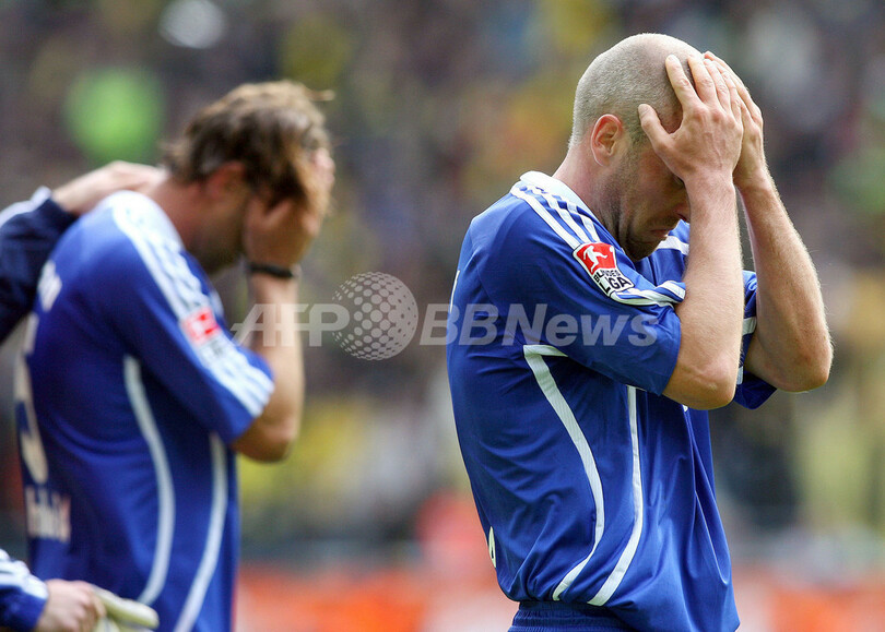 【ドルトムント/ドイツ 12日 AFP】サッカー、ドイツ・ブンデスリーガ・第33節、ボルシア・ドルトムント(Borussia Dortmund)vsシャルケ04(Schalke04)。試合は前半終了間際にアレクサンデル・フレイ(Alexander Frei)のゴールで先制したドルトムントが2-0でシャルケを降し、4連勝で勝ち点を44に伸ばし7位に浮上した。(c)AFP/DDP/OLIVER LANG