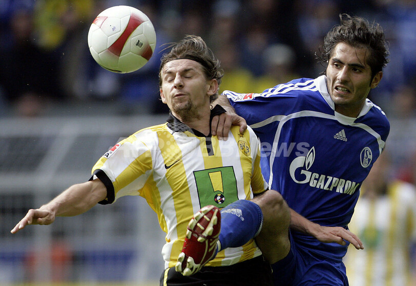 【ドルトムント/ドイツ 12日 AFP】サッカー、ドイツ・ブンデスリーガ・第33節、ボルシア・ドルトムント(Borussia Dortmund)vsシャルケ04(Schalke04)。試合は前半終了間際にアレクサンデル・フレイ(Alexander Frei)のゴールで先制したドルトムントが2-0でシャルケを降し、4連勝で勝ち点を44に伸ばし7位に浮上した。(c)AFP/DDP/OLIVER LANG