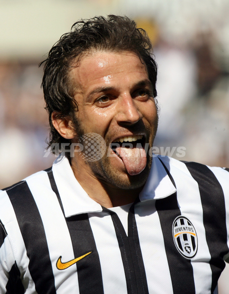 【トリノ/イタリア 12日 AFP】サッカー、イタリア・セリエB・第38節、ユベントス(Juventus)vsボローニャ(Bologna)。ユベントスのアレッサンドロ・デル・ピエロ(Alessandro Del Piero)は、2得点(前半37分、後半41分)を挙げる活躍でチームの勝利に貢献した。試合はユベントスが3-1でボローニャを降し、リーグ26勝目を挙げ勝ち点を79に伸ばした。写真は、後半41にPKを決めチームメイトのセバスティアン・ジオビンコ(Sebastian Giovinco、右)から祝福を受けるデル・ピエロ。(c)AFP/GIUSEPPE CACACE