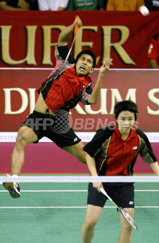 【ジャカルタ/インドネシア 13日 AFP】バドミントン、スーパーシリーズ(Super Series)第6戦、インドネシアオープン2007(Indonesia Open 2007)、混合ダブルス決勝。大会第5シードのチェン・ポウ(Zheng Bo、中国)/ガオ・リン(Gao Ling、中国)組は、大会第1シードのノヴァ・ウィディアント(Nova Widianto、インドネシア)/リリヤナ・ナシル(Liliyana Natsir、インドネシア)組と対戦。チェン・ポウ/ガオ・リン組はセットカウント2-0(21-16、21-11)で勝利を収め、今大会の優勝を飾った。(c)AFP/Ahmad ZAMRONI