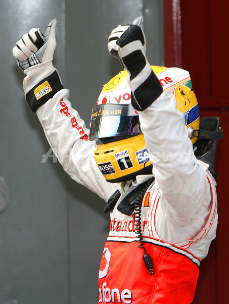 【モンメロー/スペイン 13日 AFP】F1・2007年シーズン第4戦・スペインGP(Spanish Grand Prix 2007)、決勝。4番グリッドからスタートしたマクラーレン・メルセデス(McLaren-Mercedes)のルイス・ハミルトン(Lewis Hamilton)は、首位と6秒790差の1時間31分43秒020をマークして2位でフィニッシュし、デビュー以来4戦連続の表彰台入りを果たした。(c)AFP/LLUIS GENE