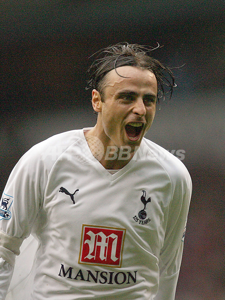 【ロンドン 13日 AFP】サッカー、イングランド・プレミアリーグ・最終第38節、トッテナム・ホットスパー(Tottenham Hotspur)vsマンチェスター・シティ(Manchester City)。トッテナムのディミタール・ベルバトフ(Dimitar Berbatov)は、前半32分にチーム2得点目を決めてシーズン12ゴール目をマーク。試合はトッテナムが2-1で勝利し、勝ち点を60に伸ばして5位でシーズンを終え07-08シーズンのUEFA杯(UEFA Cup)出場権を獲得した。写真は、ゴールに歓喜するベルバトフ。(c)AFP/BERTRAND LANGLOIS