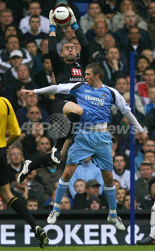 【ロンドン 13日 AFP】サッカー、イングランド・プレミアリーグ・最終第38節、トッテナム・ホットスパー(Tottenham Hotspur)vsマンチェスター・シティ(Manchester City)。トッテナムのディミタール・ベルバトフ(Dimitar Berbatov)は、前半32分にチーム2得点目を決めてシーズン12ゴール目をマーク。試合はトッテナムが2-1で勝利し、勝ち点を60に伸ばして5位でシーズンを終え07-08シーズンのUEFA杯(UEFA Cup)出場権を獲得した。写真は、ゴールに歓喜するベルバトフ。(c)AFP/BERTRAND LANGLOIS