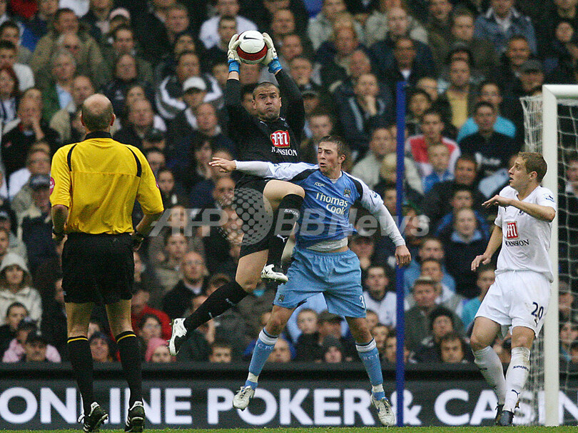 【ロンドン 13日 AFP】サッカー、イングランド・プレミアリーグ・最終第38節、トッテナム・ホットスパー(Tottenham Hotspur)vsマンチェスター・シティ(Manchester City)。トッテナムのディミタール・ベルバトフ(Dimitar Berbatov)は、前半32分にチーム2得点目を決めてシーズン12ゴール目をマーク。試合はトッテナムが2-1で勝利し、勝ち点を60に伸ばして5位でシーズンを終え07-08シーズンのUEFA杯(UEFA Cup)出場権を獲得した。写真は、ゴールに歓喜するベルバトフ。(c)AFP/BERTRAND LANGLOIS