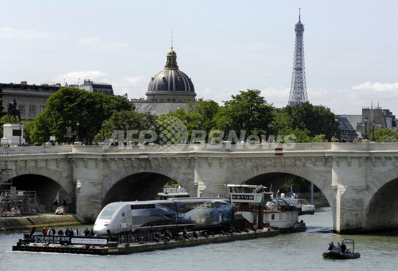 ニュース 政治・経済 セーヌ川を「滑走」するTGV - フランス 2007年5月14日 2:25 発信地:フランス [ ヨーロッパ フランス ] このニュースをシェア ‹ › ❮ 4/6 ❯ 写真は13日、イベントでパリのセーヌ(Seine)川にかかる橋をくぐるTGVの車両。(c)AFP/STEPHANE DE SAKUTIN 画像作成中 ! 【パリ 14日 AFP】フランスの高速列車TGVは、2007年4月3日に時速574.8キロを記録し、世界最高速度の記録を更新した。写真は13日、イベントでパリのセーヌ(Seine)川を運ばれるTGVの車両。(c)AFP/STEPHANE DE SAKUTIN 政治・経済 一覧へ> メディア・報道関係・法人の方向け 写真・動画 購入のお問合せ>