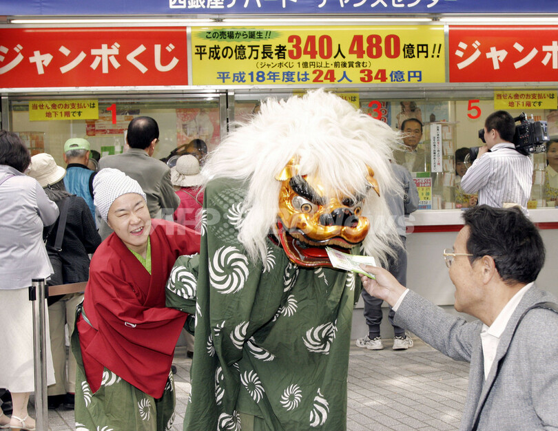 ニュース ライフ 「ドリームジャンボ宝くじ」発売 - 東京 2007年5月14日 10:59 発信地:東京 [ アジア・オセアニア 東京 ] このニュースをシェア ‹ › ❮ 1/6 ❯ 写真は14日、東京の販売所前で購入した宝くじを獅子舞に噛んでもらって喜ぶ人(右) 。(c)AFP/Yoshikazu TSUNO 画像作成中 ! 【東京 14日 AFP】1等・前後賞合わせて最高3億円(約250万米ドル)が当たる「ドリームジャンボ宝くじ」が14日から全国で発売された。億万長者を目指して大勢の人が宝くじ売り場に列を作った。写真は14日、東京の販売所前で購入した宝くじを獅子舞に噛んでもらって喜ぶ人(右) 。(c)AFP/Yoshikazu TSUNO ライフ 一覧へ> メディア・報道関係・法人の方向け 写真・動画 購入のお問合せ>