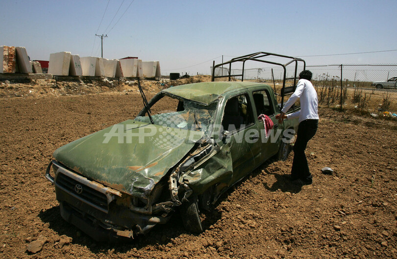 写真は同日、カルニで銃弾を受けた車両。(c)AFP/MOHAMMED ABED