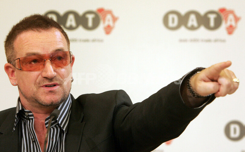 【ベルリン 15日 AFP】6月に開催される主要8か国(G8)サミットを控えた15日、国際NGO「DATA(Debt、AIDS、Trade、Africa)」が2007年の報告書を発表した。記者会見では、アイルランド出身のミュージシャン、ロックバンドU2のボーカルのボノ(Bono)とロック歌手ボブ・ゲルドフ(Bob Geldof)が、アフリカ援助の公約を守らなかったとしてドイツを非難し、アンゲラ・メルケル(Angela Merkel)首相の道義的責任を追求した。写真は同日、貴社会見に出席したボノ。(c)AFP/JOHN MACDOUGALL