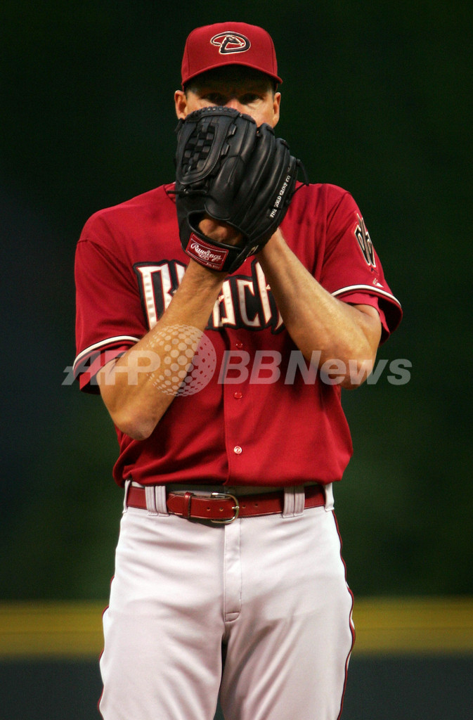 【デンバー/米国 15日 AFP】07MLB、コロラド・ロッキーズ(Colorado Rockies)vsアリゾナ・ダイヤモンドバックス(Arizona Diamondbacks)。ダイヤモンドバックスの先発ランディ・ジョンソン(Randy Johnson)は、6回を投げ1安打無失点9奪三振と見事な投球を見せ、移籍後初勝利を飾った。試合はダイヤモンドバックスが3-0でロッキーズを降し連敗を2で止めた。(c)AFP/Getty Images Doug Pensinger