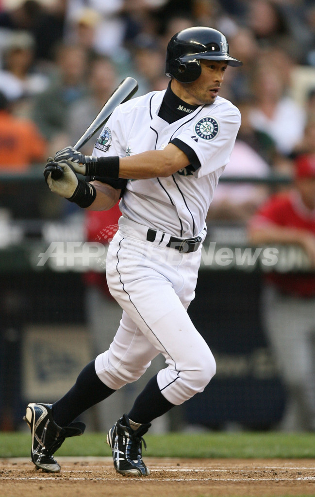 【シアトル/米国 15日 AFP】07MLB、シアトル・マリナーズ(Seattle Mariners)vsロサンゼルス・エンゼルス・オブ・アナハイム(Los Angeles Angels of Anaheim)。1番・中堅で先発出場したマリナーズのイチロー(Ichiro)は、今季初の5安打を記録する活躍でチームの勝利に貢献。試合はマリナーズが11-3で勝利し、連勝した。(c)AFP/Getty Images Otto Greule Jr