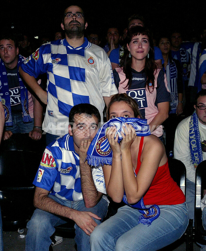 スポーツ サッカー <サッカー UEFA杯>エスパニョール 決勝でセビージャに敗れる - スペイン 2007年5月17日 7:10 発信地:スペイン [ ヨーロッパ スペイン ] このニュースをシェア ‹ › ❮ 2/3 ❯ 写真は、エスパニョールの地元バルセロナで敗戦に落胆するエスパニョール・サポーター。(c)AFP/CESAR RANGEL 画像作成中 ! 【バルセロナ/スペイン 16日 AFP】サッカー、UEFA杯(UEFA Cup)・決勝、セビージャ(Sevilla)vsエスパニョール(Espanyol)。試合は1-1で迎えた延長でも両チーム共に1点づつを取り合い決着が着かず、PK戦の末エスパニョールが1-3で敗れ、欧州初タイトル獲得を逃した。写真は、エスパニョールの地元バルセロナで敗戦に落胆するエスパニョール・サポーター。(c)AFP/CESAR RANGEL サッカー 一覧へ> メディア・報道関係・法人の方向け 写真・動画 購入のお問合せ>