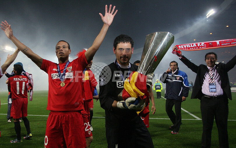 【グラスゴー/英国 16日 AFP】サッカー、UEFA杯(UEFA Cup)・決勝、セビージャ(Sevilla)vsエスパニョール(Espanyol)。試合は1-1で迎えた延長でも両チーム共に1点づつを取り合い決着が着かず、PK戦の末セビージャが3-1で勝利し大会連覇を達成した。