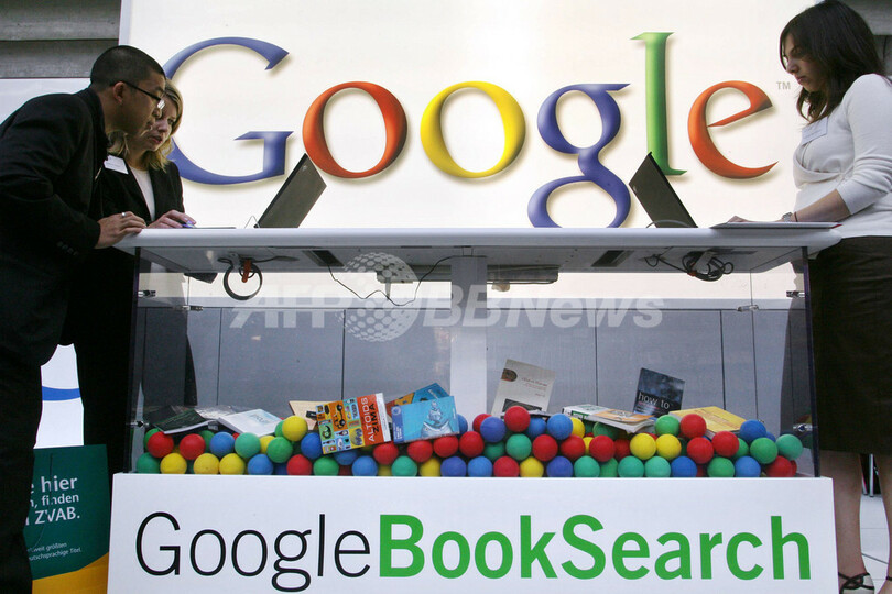 写真は、ドイツのフランクフルト(Frankfurt)で開催されたフランクフルト・ブックフェアに出展したグーグルのブース(2006年10月4日撮影)(c)AFP/DDP/THOMAS LOHNES