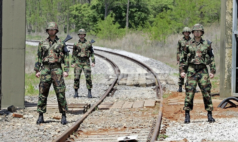 【ソウル 17日 AFP】厳重に防備された韓国と北朝鮮の国境を17日、1950~53年の朝鮮戦争以来初めて、2本の列車が越えた。この模様はテレビで中継された。