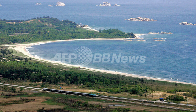 写真は同日、非武装地帯東岸の高城(Goseong)を通過する北朝鮮の列車。(c)AFP/AHN YOUNG-JOON