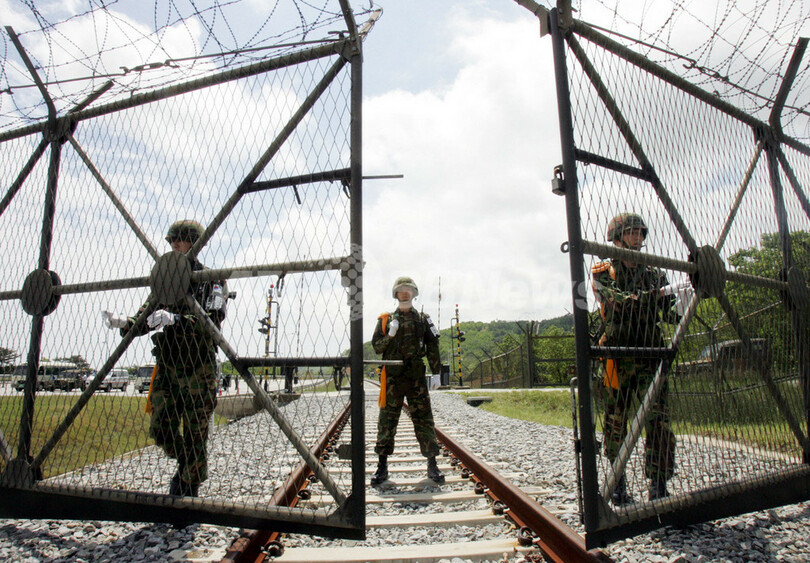 【ソウル 17日 AFP】厳重に防備された韓国と北朝鮮の国境を17日、1950~53年の朝鮮戦争以来初めて、2本の列車が越えた。この模様はテレビで中継された。