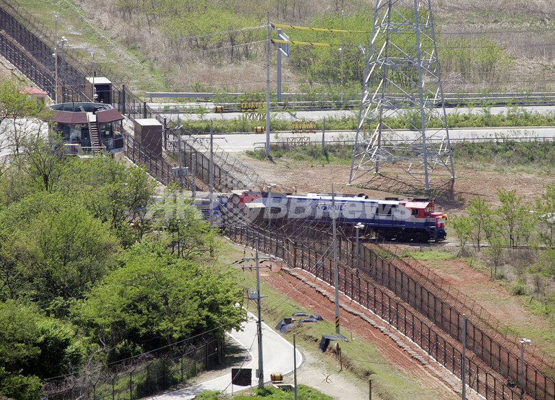 【ソウル 17日 AFP】厳重に防備された韓国と北朝鮮の国境を17日、1950~53年の朝鮮戦争以来初めて、2本の列車が越えた。この模様はテレビで中継された。