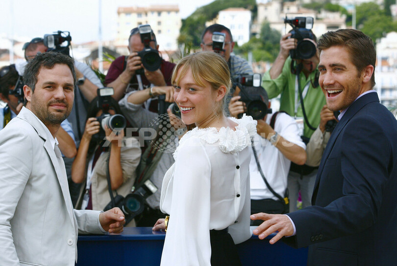 【カンヌ/フランス 16日 AFP】16日~27日にかけて開催される第60回カンヌ国際映画祭(60th Cannes Film Festival)の2日目となる17日、『ゾディアック(Zodiac)』のフォトコールが行われた。米国出身のデヴィッド・フィンチャー(David Fincher)監督が手がけた同作品は、コンペティション部門出品22作品のひとつとしてパルム・ドール(Palme d’Or)を狙う。写真は、フォトコールに登場した(左から)俳優のジェイク・ギレンホール(Jake Gyllenhaal)、クロエ・セヴィニー(Chloe Sevigny)、マーク・ラファロ(Mark Ruffalo)。(c)AFP PHOTO/ANNE-CHRISTINE POUJOULAT