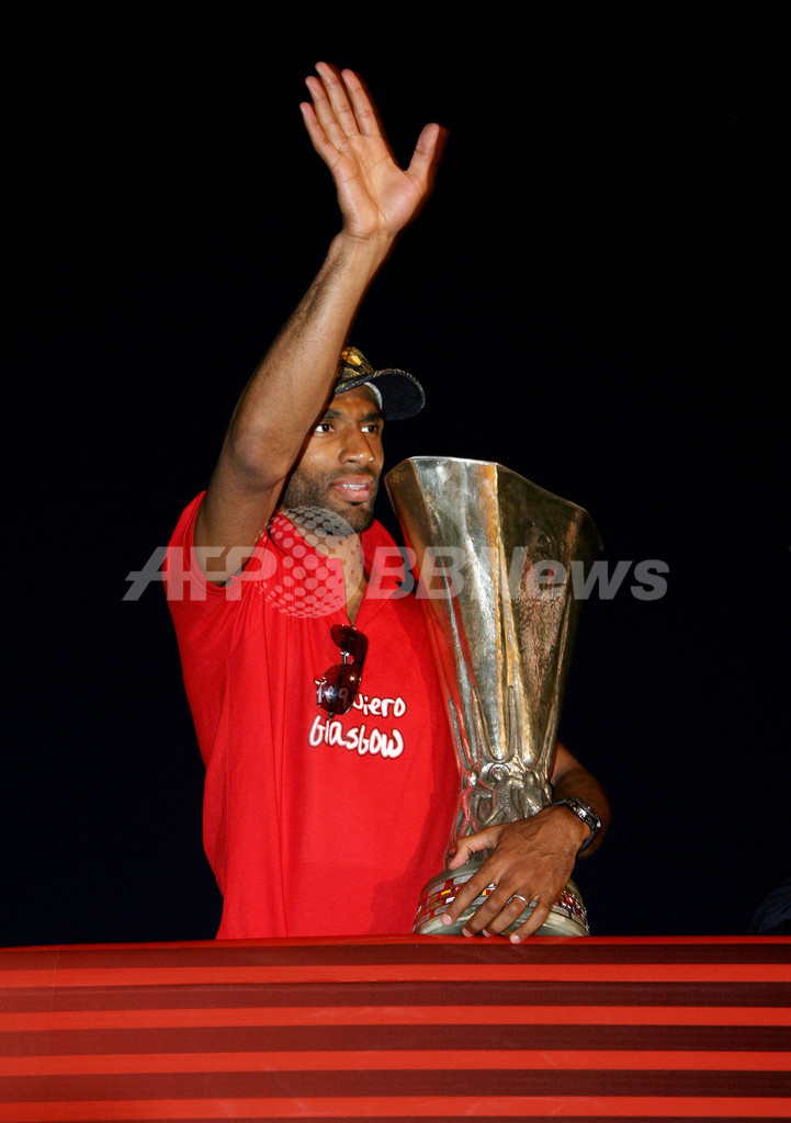 スポーツ サッカー <サッカー UEFA杯>セビージャ ホームタウンで凱旋パレード - スペイン 2007年5月18日 5:52 発信地:スペイン [ ヨーロッパ スペイン ] このニュースをシェア ‹ › ❮ 10/19 ❯ 写真は、優勝トロフィーを手にサポーターの声援に応えるフレデリック・カヌーテ(%%Frederic Kanoute%%)。(c)AFP/JOSE LUIS ROCA 画像作成中 ! 【セビリア/スペイン 17日 AFP】サッカー、UEFA杯(UEFA Cup)・決勝でエスパニョール(Espanyol)をPK戦の末3-1で降し、大会連覇を達成したセビージャ(Sevilla)が、ホームタウンのセビリアで凱旋パレードを行った。写真は、優勝トロフィーを掲げる選手たち。(c)AFP/JOSE LUIS ROCA サッカー 一覧へ> メディア・報道関係・法人の方向け 写真・動画 購入のお問合せ>