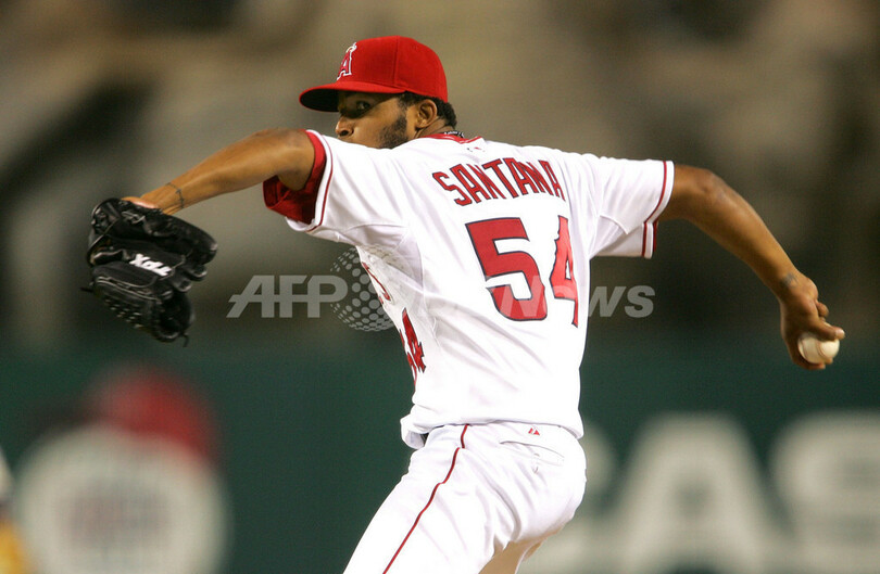 【カリフォルニア/米国 18日 AFP】07MLB、ロサンゼルス・エンゼルス・オブ・アナハイム(Los Angeles Angels of Anaheim)vsロサンゼルス・ドジャース(Los Angeles Dodgers)。エンゼルスの先発アービン・サンタナ(Ervin Santana)は、ドジャース打線に6安打3与四球を許すも6回1失点に抑え、今季3勝目を挙げた。試合はエンゼルスが9-1で勝利し、3連勝を飾った。(c)AFP/Getty Images Stephen Dunn