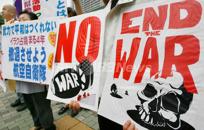 【東京 19日 AFP】航空自衛隊のイラク派遣を2年間延長する「イラク復興支援特別措置法改正案」に反対する平和活動家ら約100人が19日、東京の防衛省前で抗議活動を行った。この法案は15日に衆院本会議で可決され参院に送付され、今国会で成立する見通しとなっている。