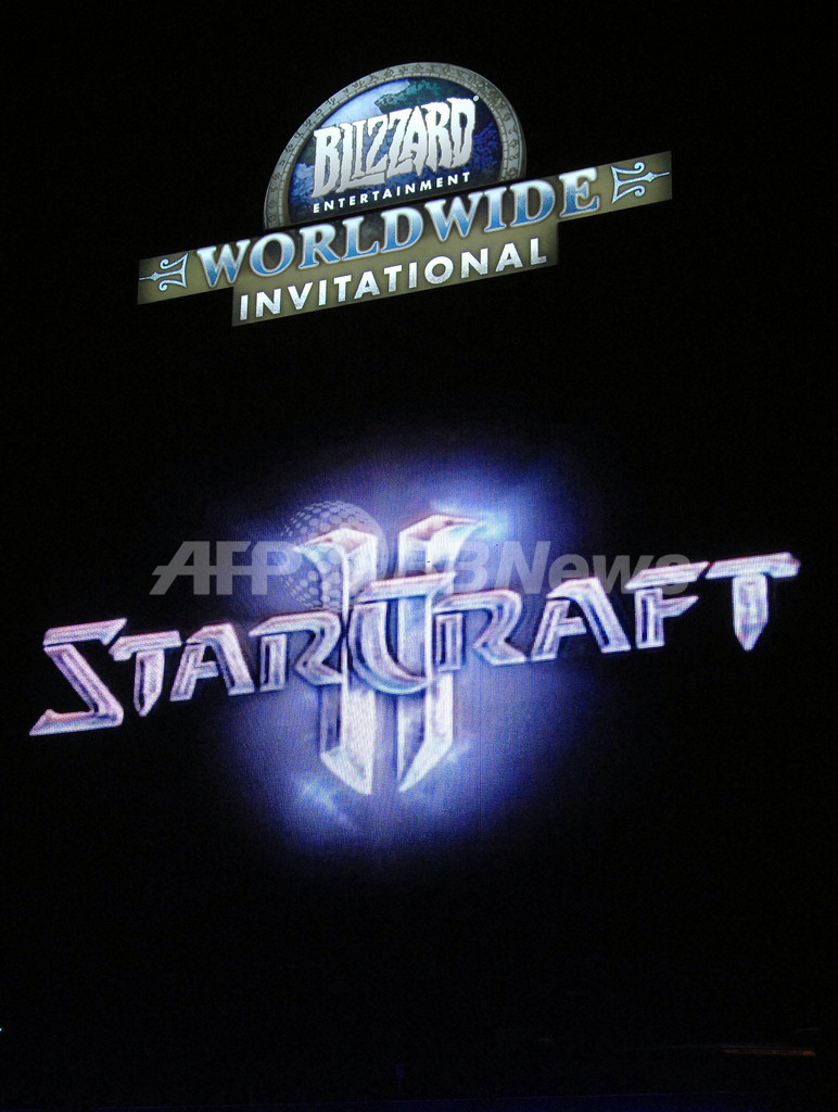 【ソウル 19日 AFP】米国のコンピューターゲーム製作・販売会社、ブリザード・エンターテインメント(Blizzard Entertainment)は19日、ソウルで新作ゲームの「スタークラフト2(StarCraft 2)」を発表した。新作は3Dとなり、「新種族」も追加、また既存の種族も大幅に修正されている。写真はゲームについて説明をするゲーム開発担当者、Dustin Browder氏(右下)。(c)AFP/JUNG YEON-JE