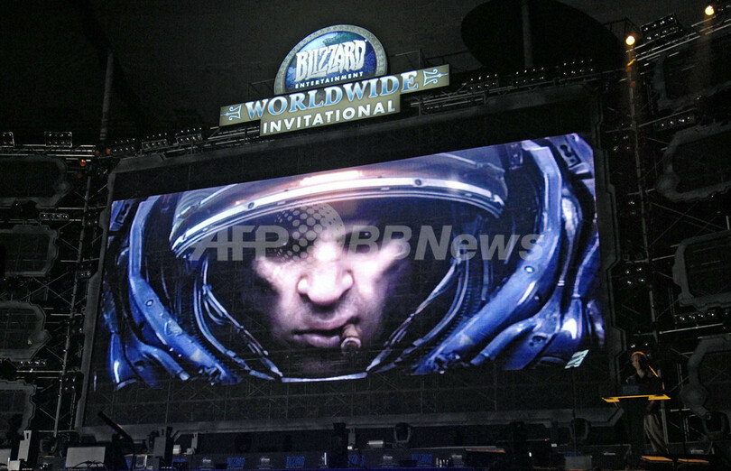 【ソウル 19日 AFP】米国のコンピューターゲーム製作・販売会社、ブリザード・エンターテインメント(Blizzard Entertainment)は19日、ソウルで新作ゲームの「スタークラフト2(StarCraft 2)」を発表した。新作は3Dとなり、「新種族」も追加、また既存の種族も大幅に修正されている。写真はゲームについて説明をするゲーム開発担当者、Dustin Browder氏(右下)。(c)AFP/JUNG YEON-JE