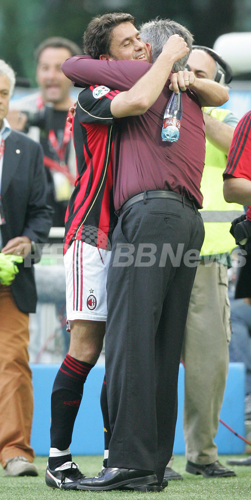 【ミラノ/イタリア 19日 AFP】サッカー、イタリア・セリエA・第37節、ACミラン(AC Milan)vsウディネーゼ(Udinese)。今季限りでの現役引退を表明しているミランのアレッサンドロ・コスタクルタ(Alessandro Costacurta)は、後半12分にPKでチーム2得点目を挙げリーグ戦では91-92シーズン以来のゴールをマークする。試合は23日に欧州チャンピオンズリーグ(Champions League)・決勝のリバプール(Liverpool)戦に向けて主力を温存したミランが2-3で敗れ、ホーム最終戦を白星で飾ることができなかった。(c)AFP/ANDREAS SOLARO