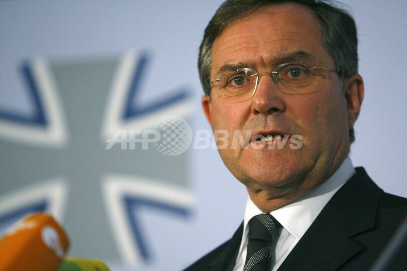 写真は同日、記者会見に臨むユング国防相。(c)AFP/DDP/AXEL SCHMIDT